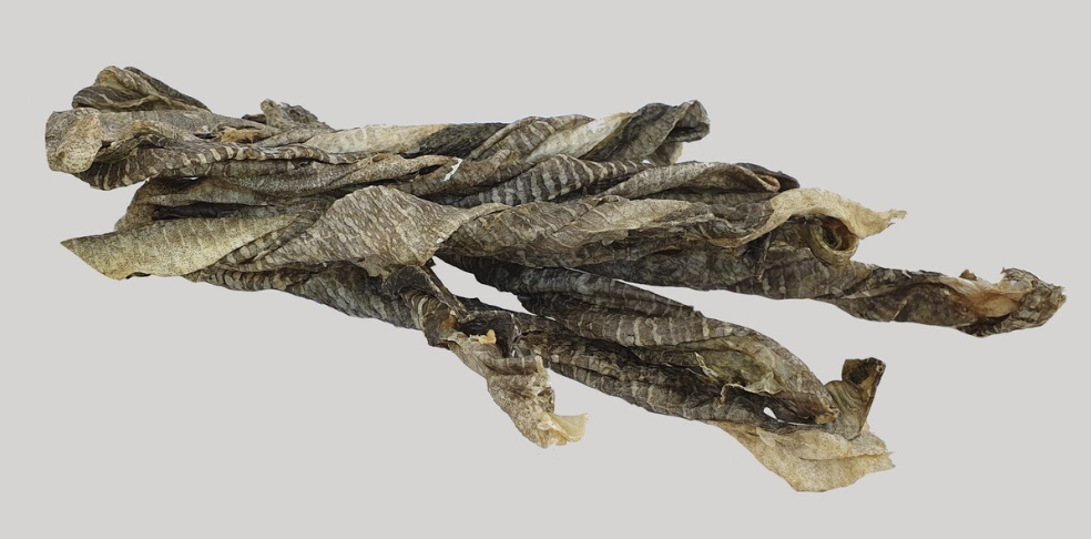 Our sustainably-sourced cod skin is air-dried to perfection. Our Fish Skin Twirls undergo a gentle extraction process, preserving their nutritional value, and resulting in a uniquely delicious and guilt-free treat. With no additives or preservatives, our all-natural product is packed with highly digestible protein and has a naturally abrasive texture that helps clean your dog's teeth. Please note that the color and size may vary slightly due to the natural ingredients. Always remember to supervise your dog while they enjoy our wheat-gluten free and hypoallergenic treat, as they can easily become too excited to chew.