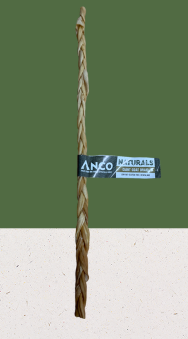 Giant Goat Braids can be a great alternative to other more widely available proteins if your dog has common protein allergies/intolerances or food sensitivities as they are hypoallergenic, they'll be gentle on even the sensitive tummies. If your dog is a keen chewer, sometimes a larger treat is necessary. These Giant Braids are a great way to relieve their natural chewing instincts in a fun, safe way while also allowing them to absorb the health benefits! Goat is leaner than Beef and Pork and also has more Iron per serving than Beef, Pork, Lamb and Chicken! Chewing down on a Giant Goat Braid could be an excellent way to sneak these into your dog's diet. *Approximately 40-50cm*