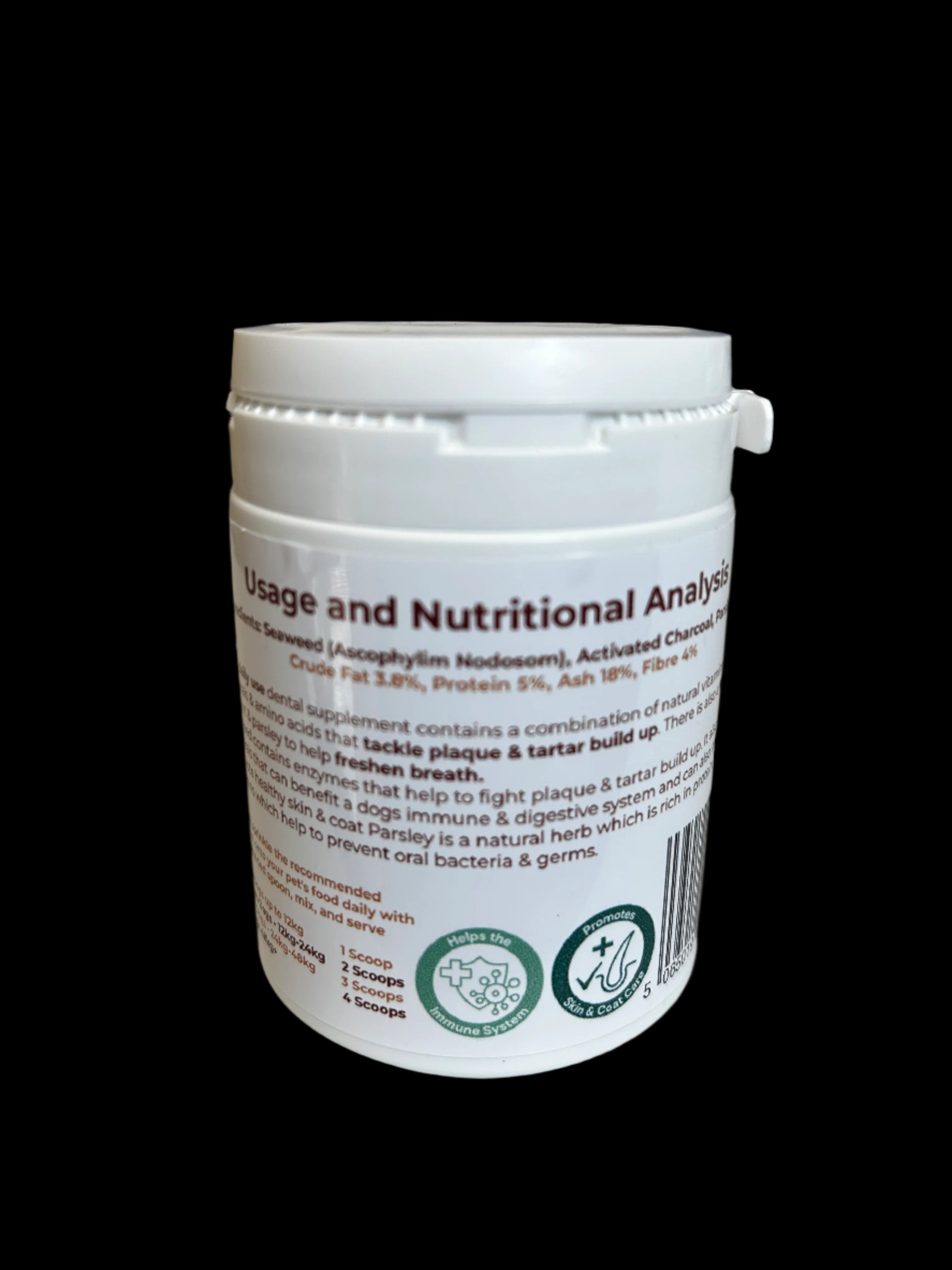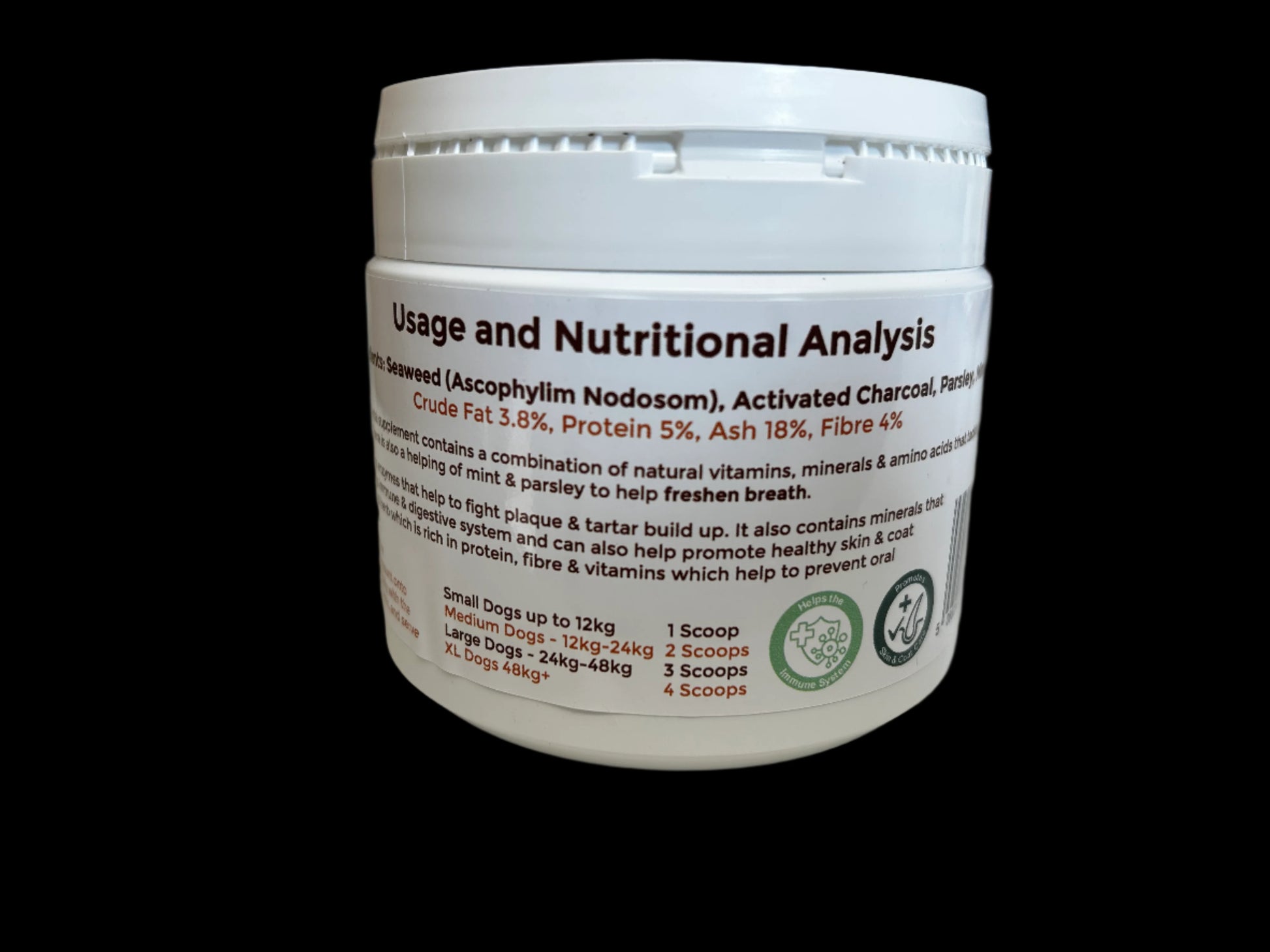 Seaweed contains enzymes that help to fight plaque & tartar build up. Seaweed also helps the dental health of your dog. It also contains minerals that can benefit a dogs immune & digestive system and can also help promote healthy skin & coat