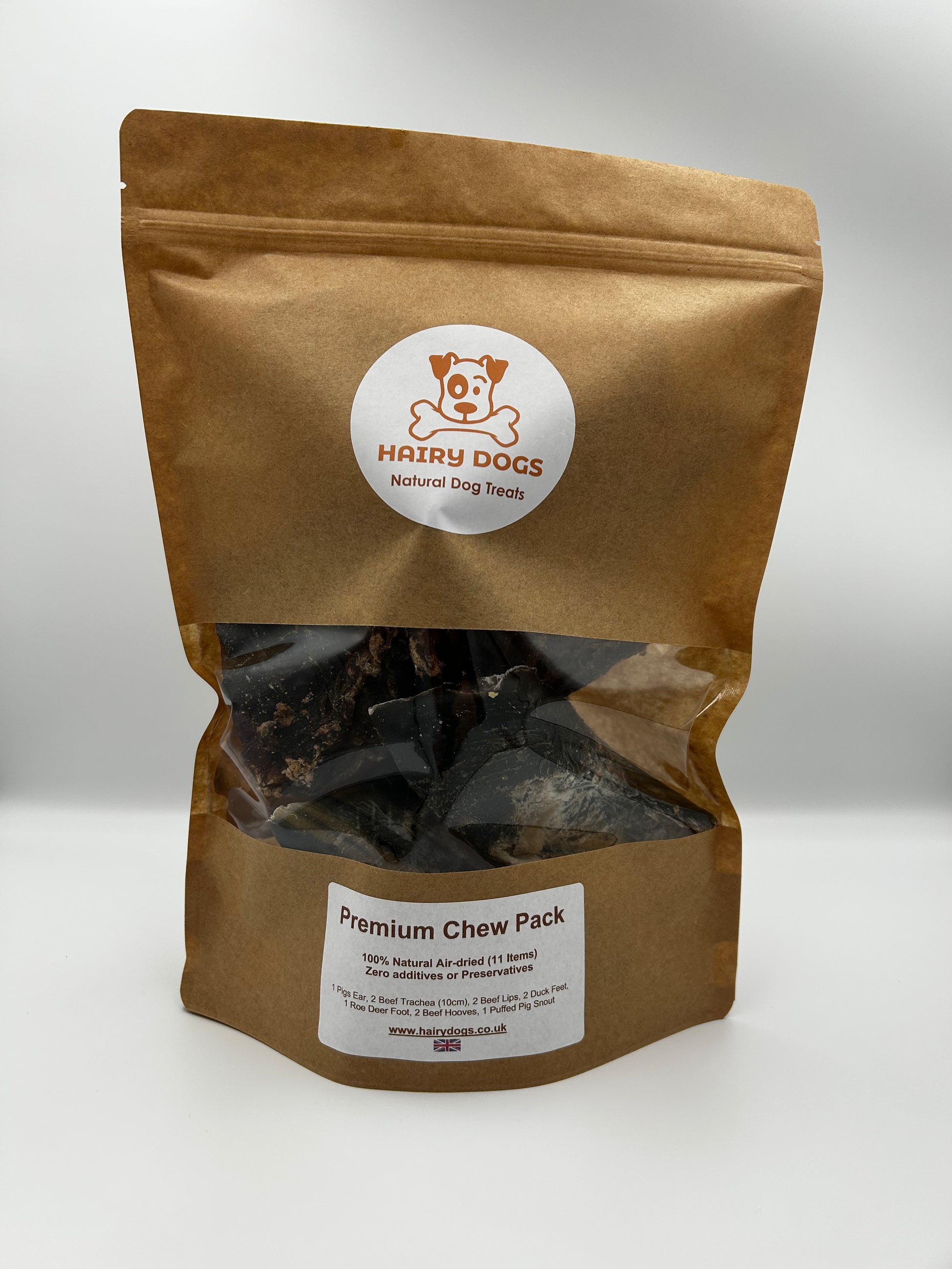 Hairy Dogs Premium Chew Pack Is perfect for providing your dog with some varied long lasting chews. With some fantastic health benefits, your dog will thank you.